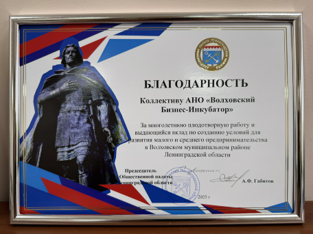 Общественная палата Ленинградской области отметила труд коллектива Волховского Бизнес-Инкубатора