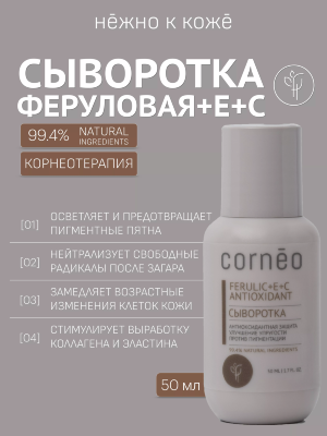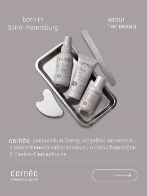 Cornēo — это натуральная косметика, которая мягко, но эффективно заботится о коже. Разрабатывается по принципам корнеотерапии. Оздоравливает роговой слой кожи путём усиления её барьерных функций. Запускает механизмы саморегуляции кожи за счёт её собственных ресурсов. Учит кожу функционировать правильно. Многие кожные патологии могут быть устранены путём восстановления рогового слоя.