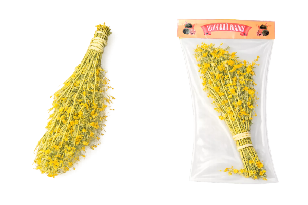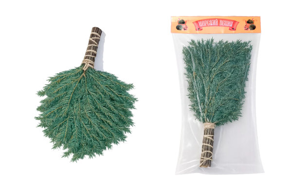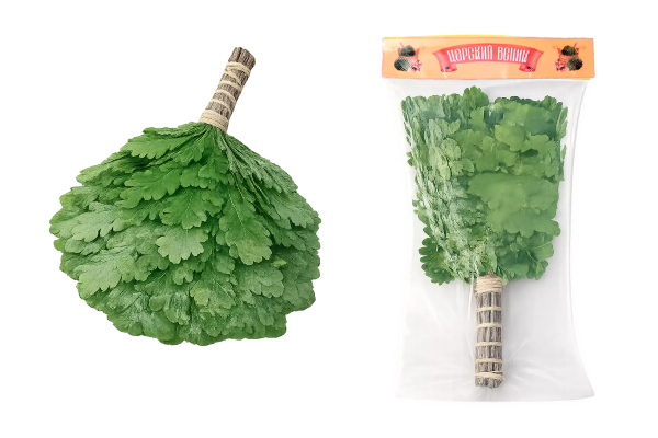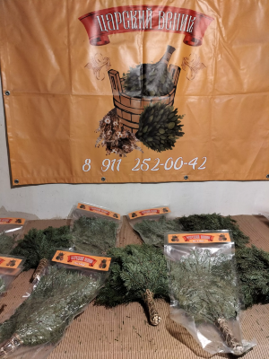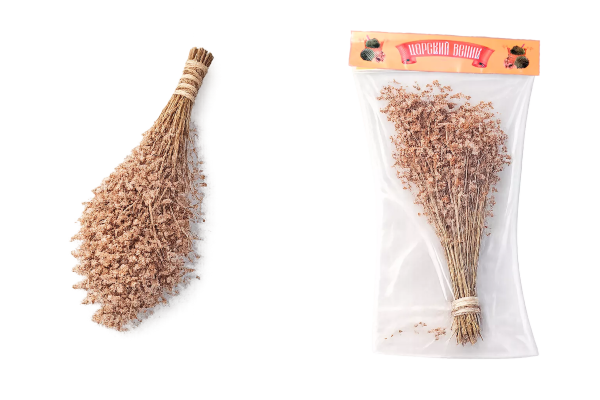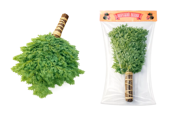 Наши веники и травы — свежезамороженные, не сухие. Они доступны круглый год и упакованы в вакуум.