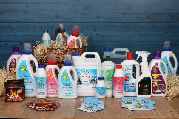 Основной объем производства приходится на средства для удаления запахов (разные модификации жидкостей и порошков для биотуалетов, выгребных ям и септиков), спреи для ухода за домашними животными, средства для ухода за бассейнами (альгициды, коагулянты и другие средства), средства для очистки дымоходов, противогололедные реагенты, противоморозные добавки в бетон и растворы и пр.
